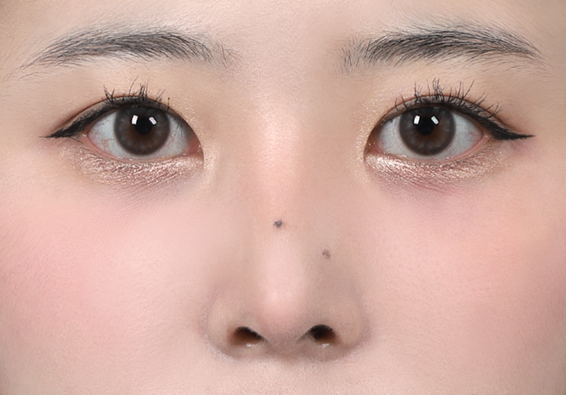 #완전절개 #윗트임 #앞트임 #콧대(실리콘) #코끝(자가연골) #매부리코 교정 (정면)