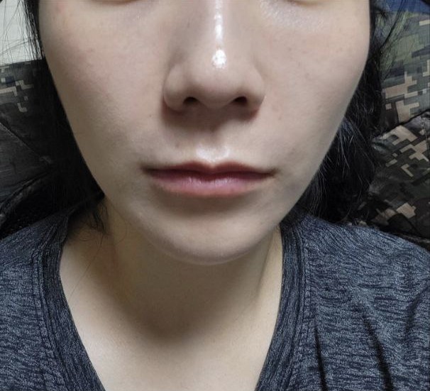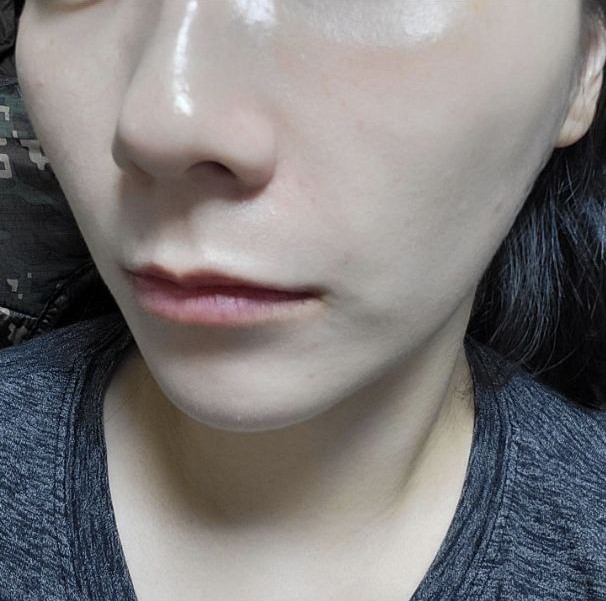 지금 한달차에 주름은 더 자연스럽게 쫙 펴졌고 앞광대 볼륨이 생겨서 그런건지 턱라인은 건드리지도 않았는데