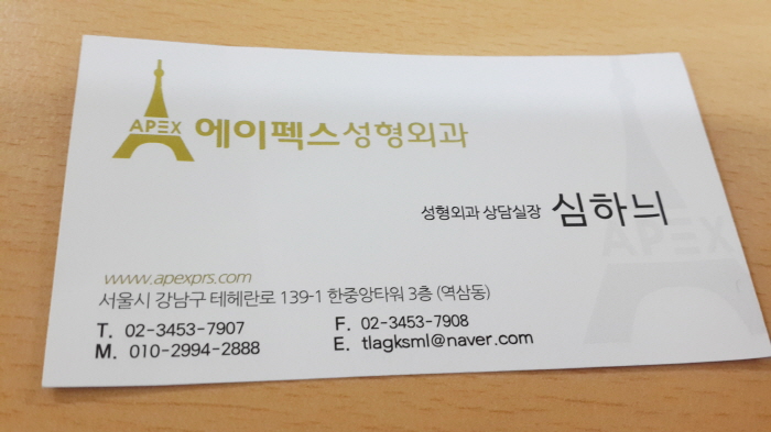 에이펙스성형외과 원장님과 상담 하면서 알게 되었습니다.