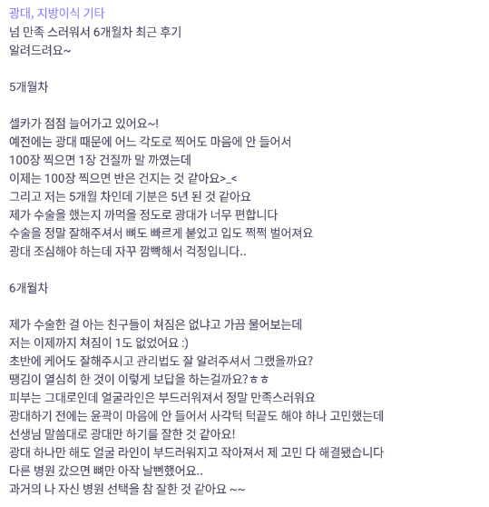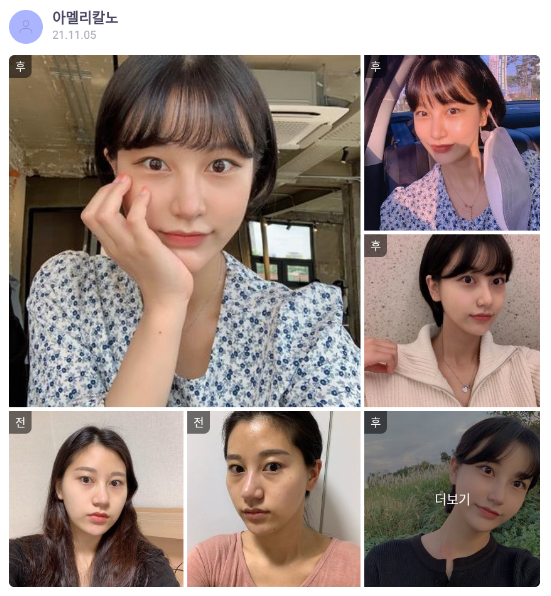 리엔장성형외과의원 ★★★★★ 5.0 [바비톡] 안면윤곽, 지방이식 / 6개월차 / 닉네임 : 아멜리칼노 익***@ | 2022.01.18 | 18 리엔장성형외과에서 수술 받은 후 바비톡에 업로드한 실제 후기입니다. 수술항목: 광대축소, 풀페이스 지방이식 리뷰 목록으로