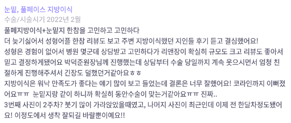 리엔장성형외과의원 ★★★★★ 5.0 [바비톡] 지방이식 / 1개월차 / 닉네임 : 요요몬a 익***@ | 2022.03.15 | 25 리뷰 목록으로