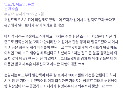 리엔장성형외과의원 ★★★★★ 5.0 [바비톡] 듀얼트임, 눈지재 / 1개월차 / 닉네임:냐아아아에에용 익***@ | 2022.09.28 | 20 리뷰 목록으로