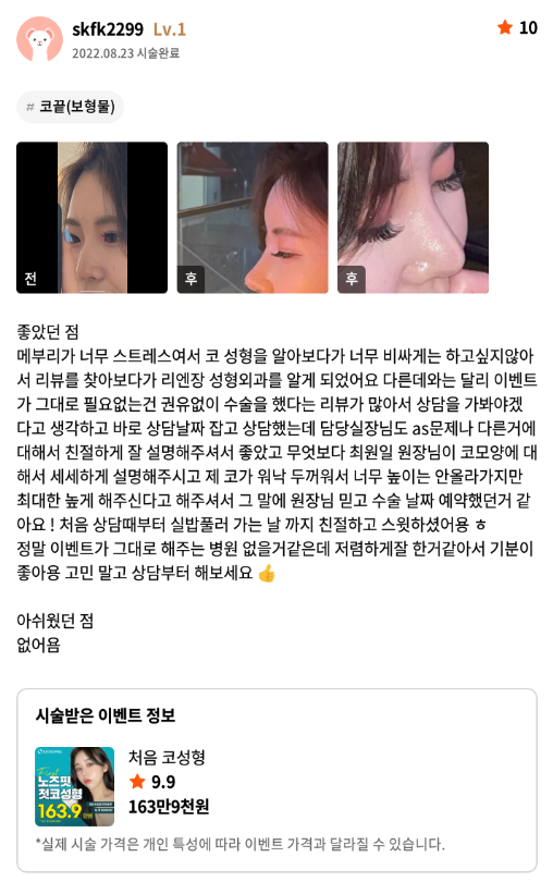 [강남언니] 코성형 / 1개월차 / 닉네임:skfk2299