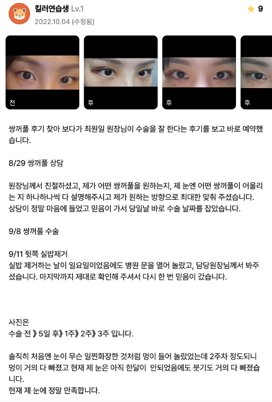 [강남언니] 자연유착(쌍꺼풀) 1개월차 / 닉네임 : 킬러연습생