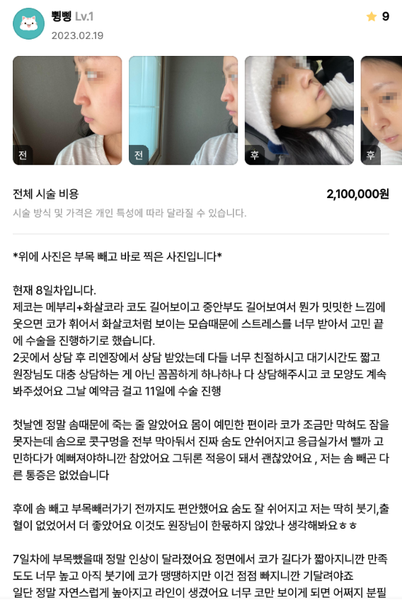 [강남언니] 코성형 1주차 / 닉네임 : 쀵삥