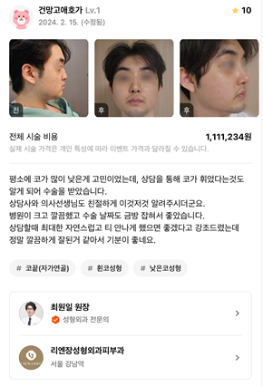 [강남언니] 코성형 / 1개월차/ 닉네임:건망고애호가