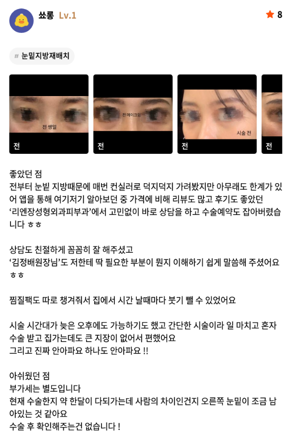 [강남언니] 눈밑지방재배치 / 1개월차 / 닉네임: 쑈롱